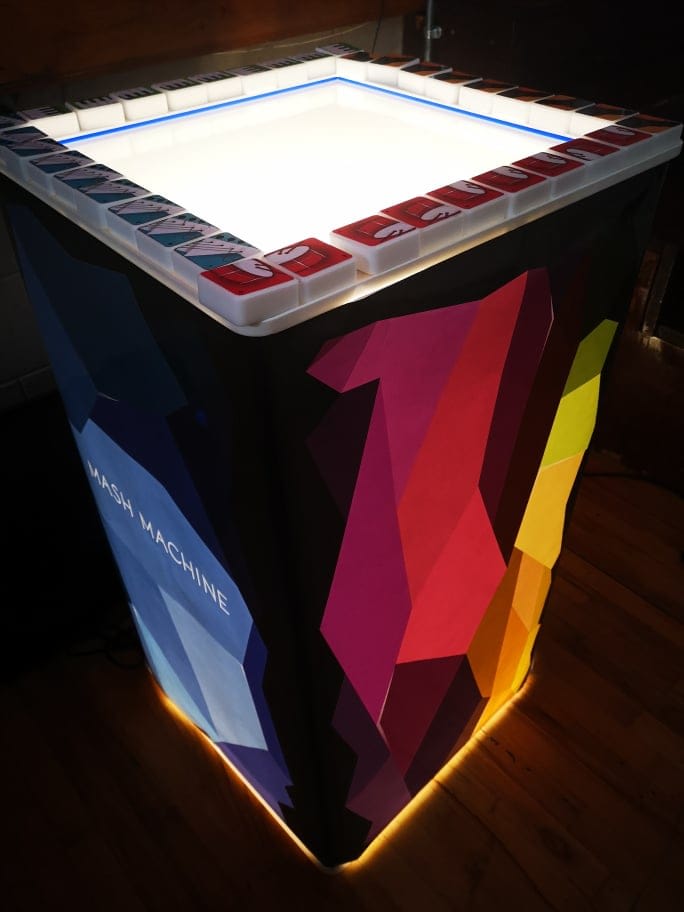 Cubes: The Mash Machine consists of cubes with QR codes at the bottom. When you place a cube on the glass plate, it immediately produces sound. The placement matters – different effects and filters are applied based on where you position the cubes, especially near the edges.
