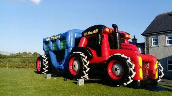 Probably the most popular bouncy castle we have. Its huge and has a full slide inside all completely covered from the rain. Book this Tractor & Trailer Bouncy Castle early as it is always in demand! For Bouncy Castle & Obstacle Course hire in County Mayo call 096 32042.