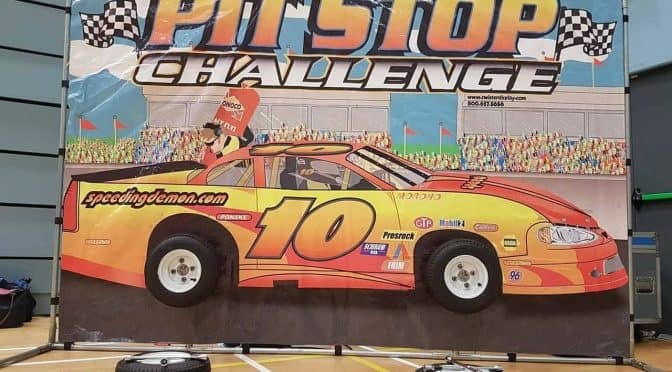 Challengers can compete in head to head action to see who can switch out their tire in the fastest time