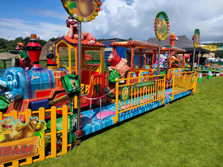 This beautiful Safari Train can hold up to 16 passengers with room for adults to accompany children as well. Fitted out as an elephant the train is followed by 3 more carriages featuring monkeys, a lion and even a giraffe. This stunning unit will be a huge hit at family fun day and festival events. Add it to our other attractions to make your own mini funfair.